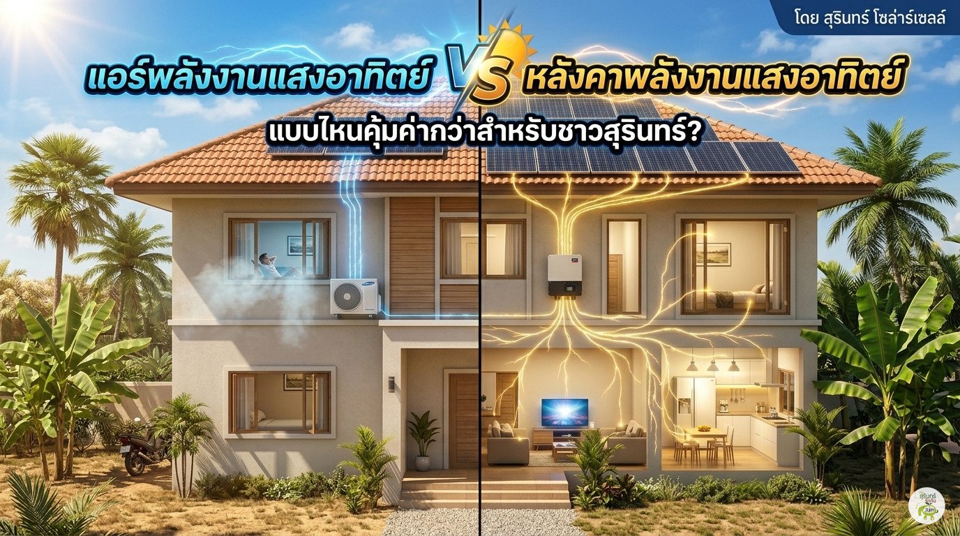 Blog Business สุรินทร์รีวิว ดอกธูป ติดตั้ง, ประหยัดไฟ, รับงาน, สุรินทร์โซล่าเซลล์, แอร์ประหยัดไป, แอร์โซล่า, โซล่าเซลล์, โซล่าเซลล์สุรินทร์ 0 Comments แอร์โซลาร์เซลล์ VS หลังคาโซลาร์เซลล์ คนสุรินทร์เลือกแบบไหนคุ้มกว่ากัน? โดย สุรินทร์โซล…