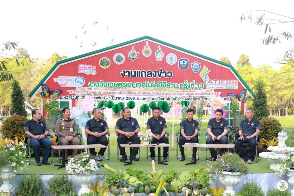 สุรินทร์ – มหาวิทยาลัยเทคโนโลยีราชมงคลอีสาน วิทยาเขตสุรินทร์ จัดแถลงข่าวการเตรียมความพร้อมจัดงาน “วันเกษตรและเทคโนโลยีอีสาน ครั้งที่ 13” ซึ่งจะจัดขึ้นระหว่างวันที่ 20 กุมภาพันธ์ – 1 มีนาคม 2569 นี้ ภายใต้แนวคิด “20 ปี แห่งการพัฒนา เกษตรและเทคโนโลยีอีสาน สืบสานนวัตกรรม น้อมถวายพระบรมราชชนนีพันปีหลวง” เพื่อเฉลิมพระเกียรติและขับเคลื่อนการพัฒนาเกษตรอินทรีย์ นวัตกรรม และเทคโนโลยีสู่ชุมชนอย่างยั่งยืน