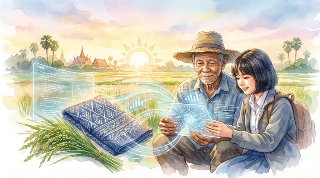 Surin108: พูดถึงเรื่องเทคโนโลยีและการเพิ่มมูลค่า… ปัจจุบันผมกำลังพัฒนานวัตกรรมนำ “เทคโนโลยี AI (ปัญญาประดิษฐ์)” เข้ามาช่วยผู้ประกอบการฐานราก เช่น ชาวบ้านที่ทอผ้าไหม หรือทำสินค้า OTOP AI จะไม่ได้มีหน้าที่แค่บอกราคาสินค้า แต่ผมออกแบบให้ AI ช่วย “เล่าเรื่อง (Storytelling)” ดึงจิตวิญญาณ ลายผ้า ประวัติศาสตร์ ออกมานำเสนอเพื่อปิดการขายให้นักท่องเที่ยวเลย ท่านมองมิตินี้อย่างไรครับ สามารถนำมาขับเคลื่อนเป็นยุทธศาสตร์จังหวัดได้ไหม?